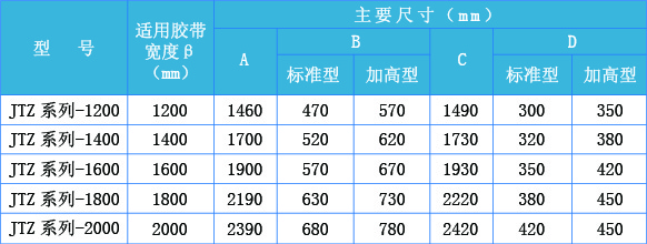 JTZ系列型 1200mm-2000mm寬度輸送帶的傳感器規(guī)格尺寸 表 3